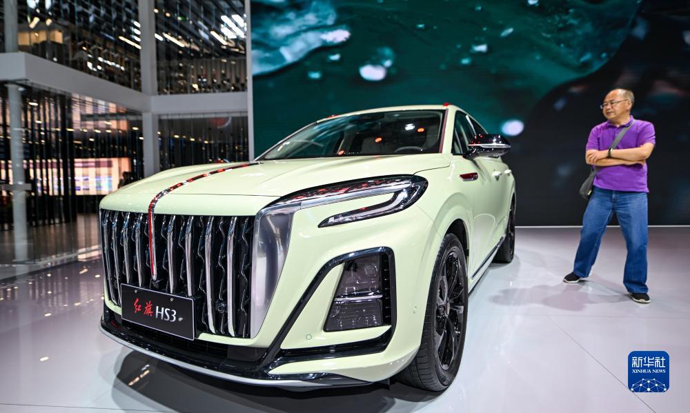 7月17日,觀眾在長春汽博會紅旗品牌汽車展區參觀紅旗HS3車型。