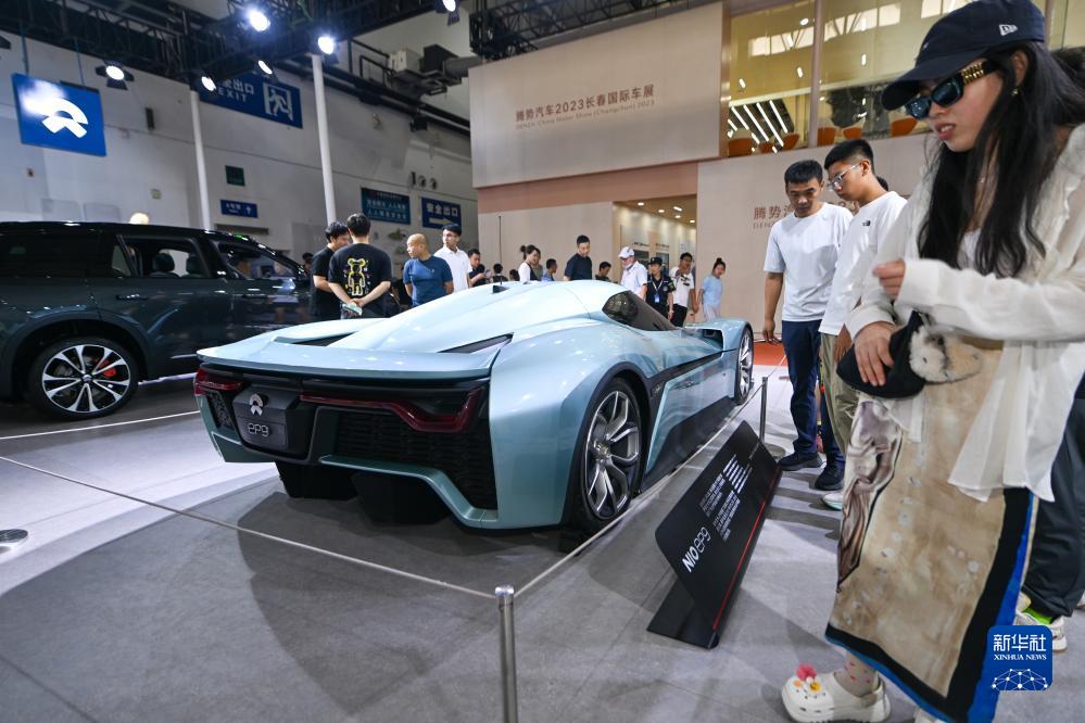 7月17日,觀眾在長(zhǎng)春汽博會(huì)蔚來(lái)品牌汽車展區(qū)參觀。