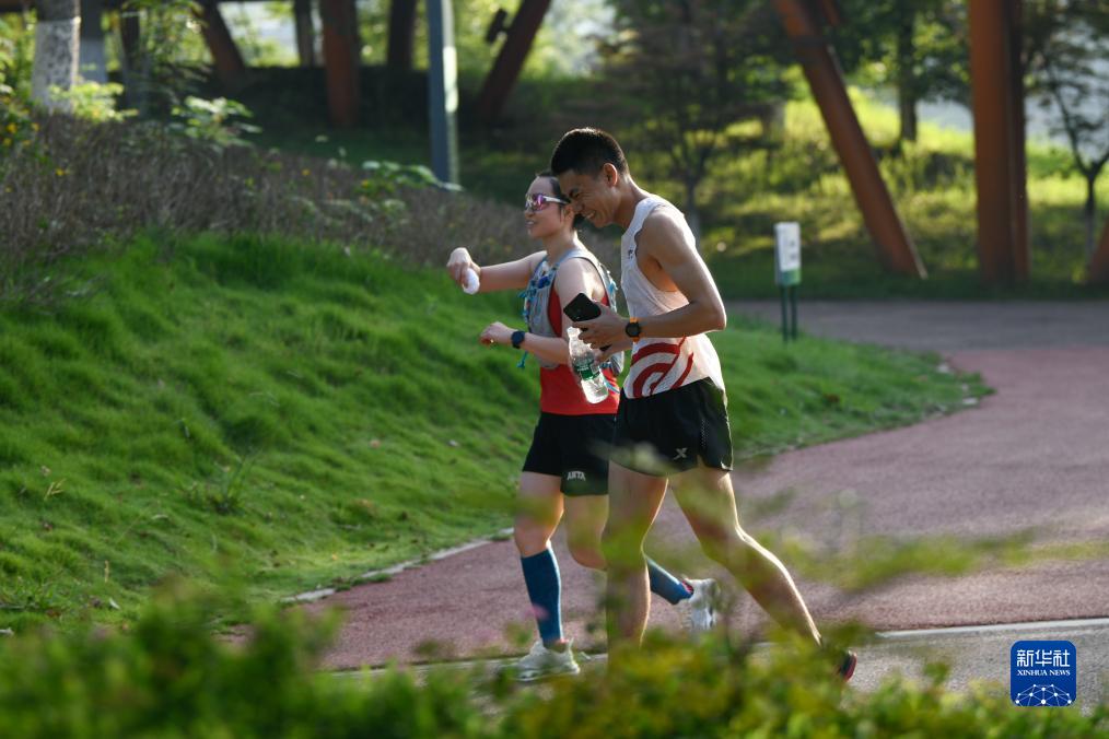 7月16日,市民在成都天府綠道跑步。