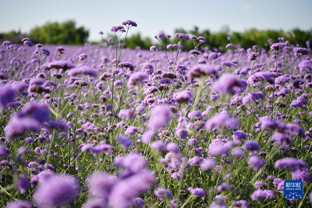 寧夏薰衣草莊園盛開(kāi)的馬鞭草(7月15日攝)。