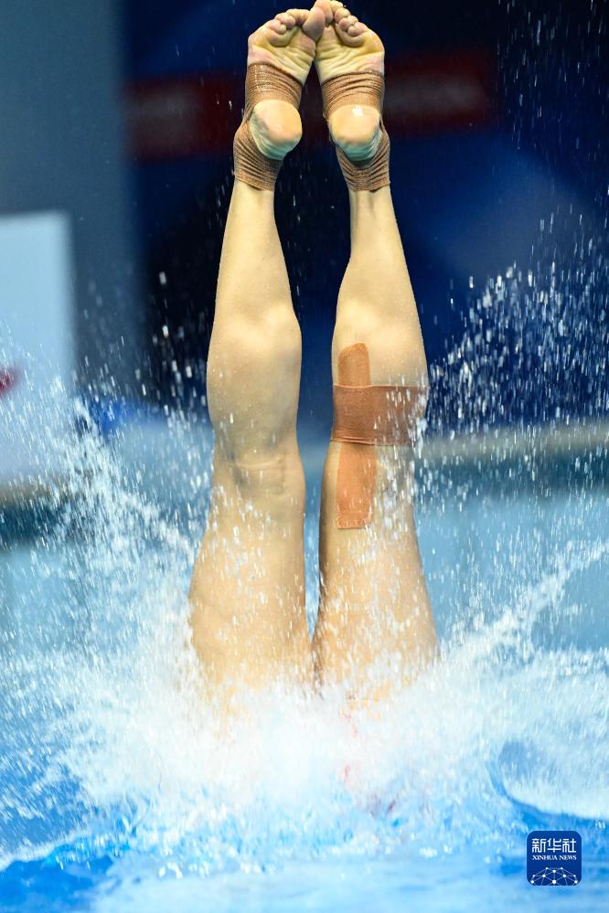 7月18日,中國選手掌敏潔在單人十米臺比賽中。