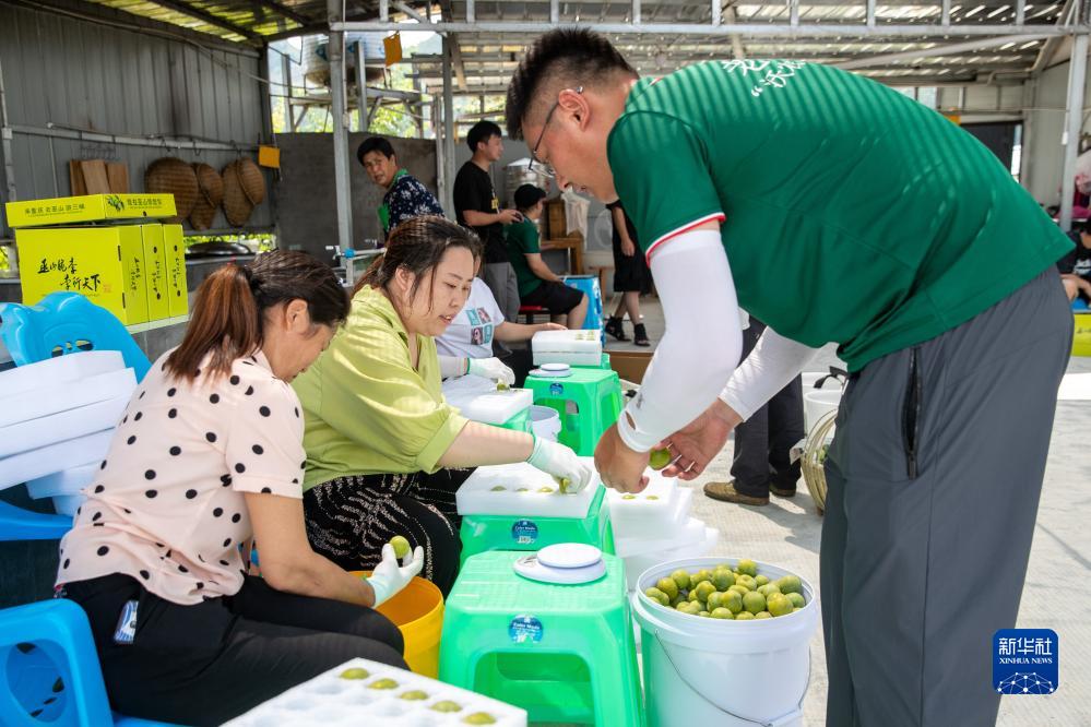 7月6日,在重慶巫山縣巫峽鎮文峰村的巫山脆李種植園外,工作人員在選果。