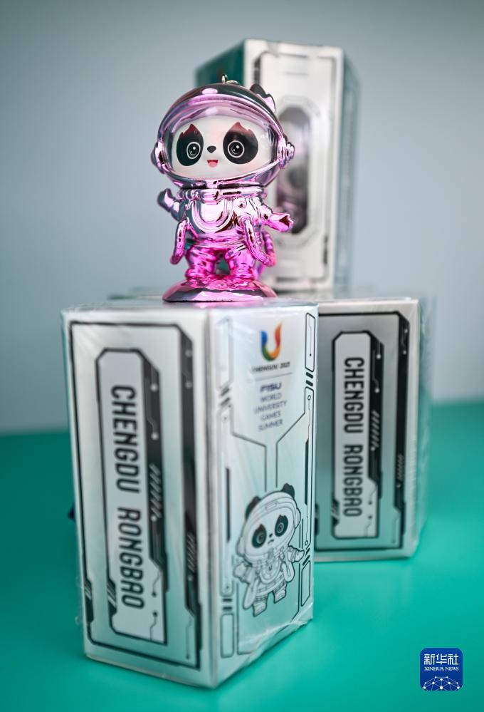這是7月19日在成都市一家成都大運會特許商品零售店內拍攝的成都大運會航天版盲盒“蓉寶”玩偶。