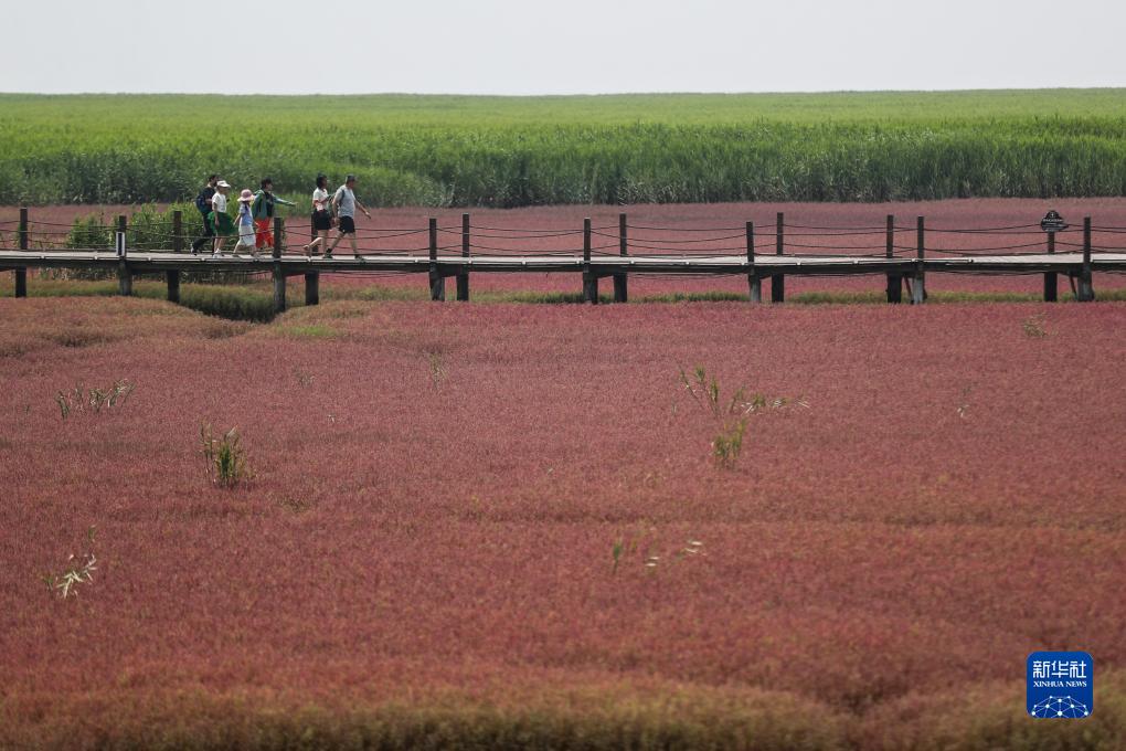 7月19日,游客在紅海灘國家風(fēng)景廊道景區(qū)內(nèi)游玩。