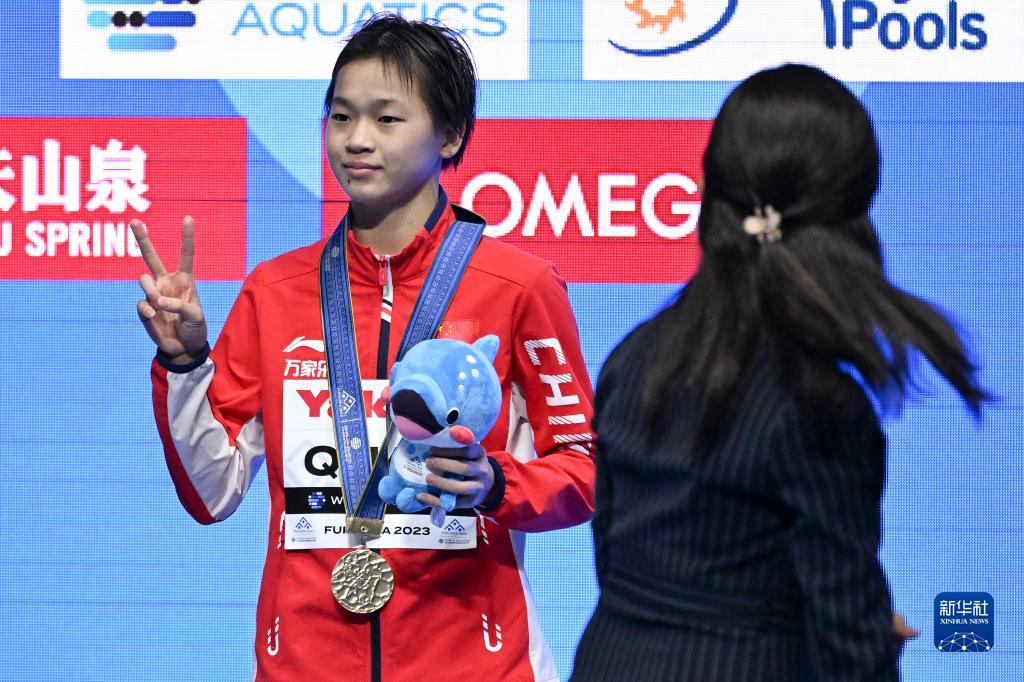 當日,在日本福岡舉行的2023年世界游泳錦標賽女單10米跳臺決賽中,中國選手陳芋汐、全紅嬋分別以457.85分與445.60分的成績包攬冠亞軍。