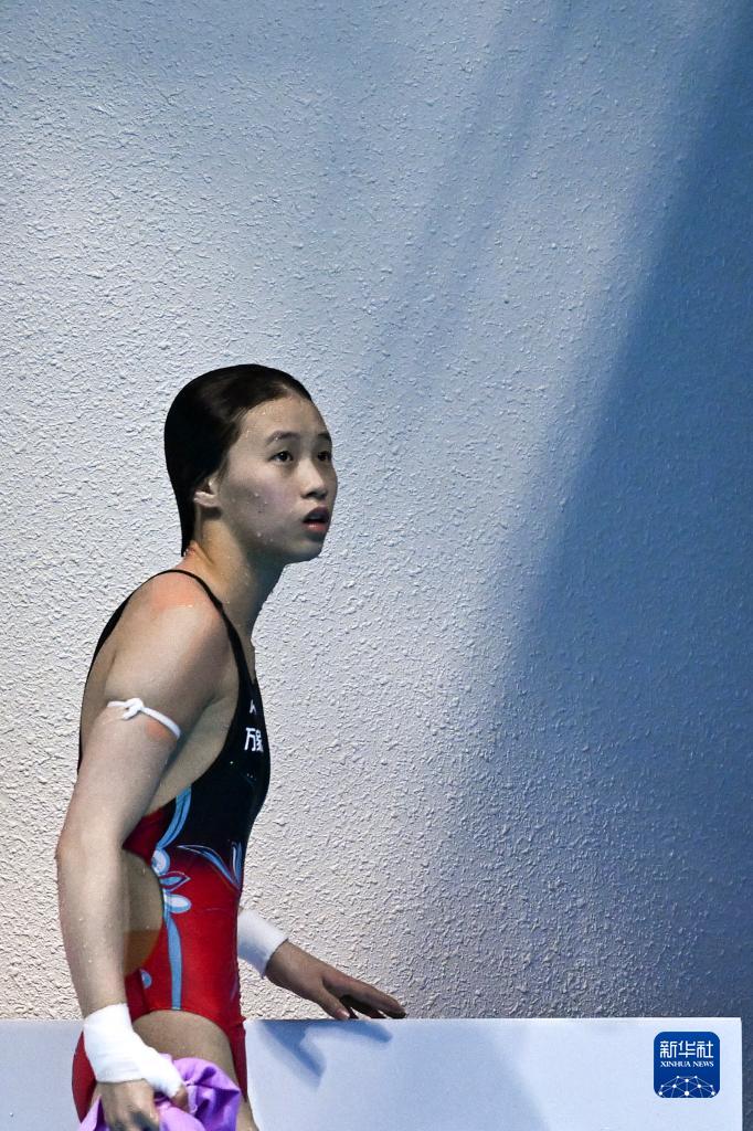 7月19日,陳芋汐在比賽后等待成績。