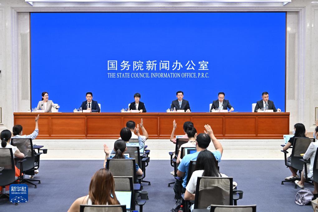 7月19日,國務(wù)院新聞辦公室在北京舉行新聞發(fā)布會,商務(wù)部副部長郭婷婷、綜合司司長楊濤、市場運行和消費促進司司長徐興鋒、對外貿(mào)易司司長李興乾、外國投資管理司司長朱冰介紹2023年上半年商務(wù)工作及運行情況,并答記者問。