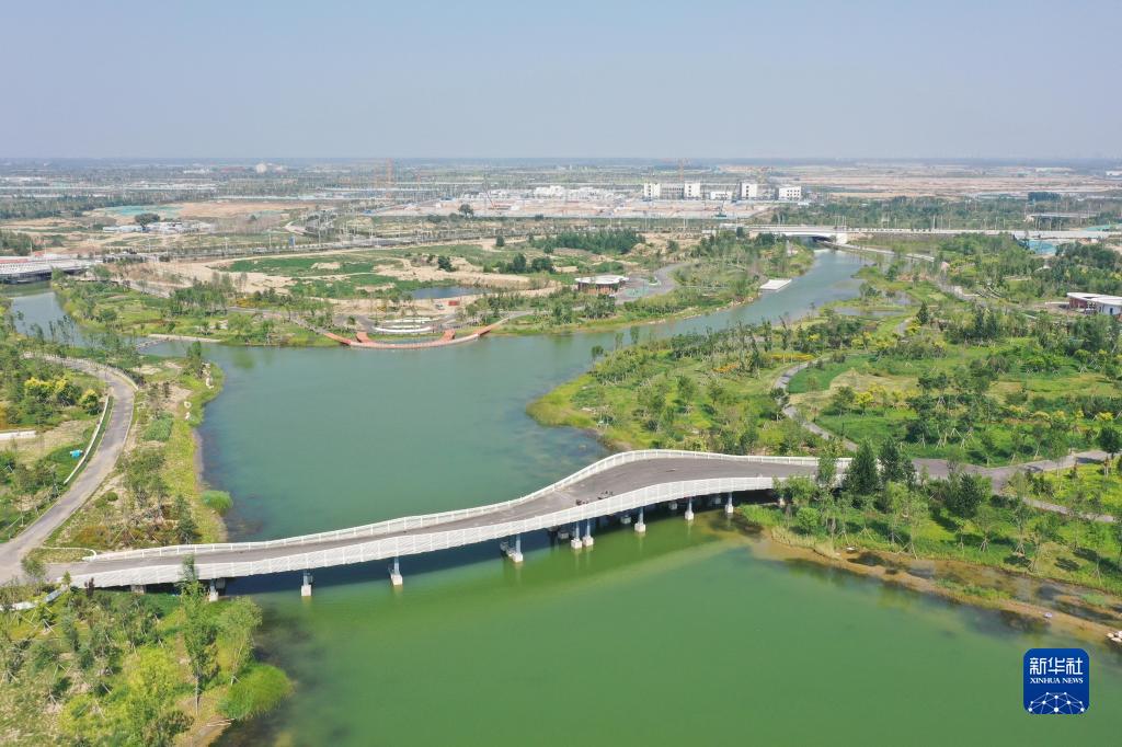 河北雄安新區(qū)啟動(dòng)區(qū)中央綠谷及東部溪谷生態(tài)廊道一角(7月18日攝,無(wú)人機(jī)照片)。