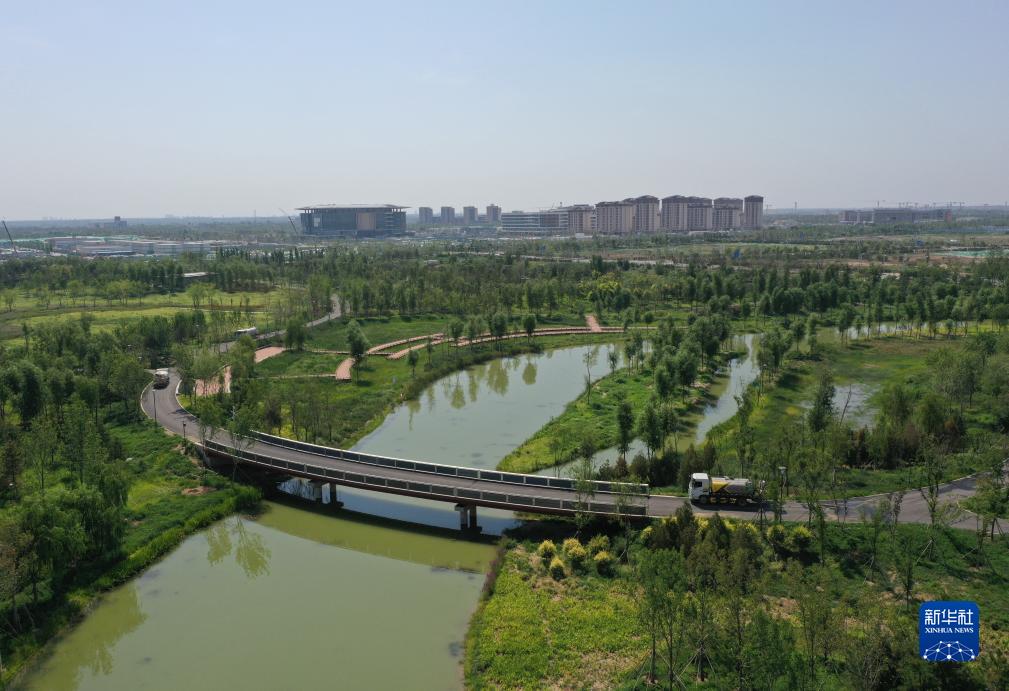 河北雄安新區啟動區中央綠谷及東部溪谷生態廊道一角(7月19日攝,無人機照片)。