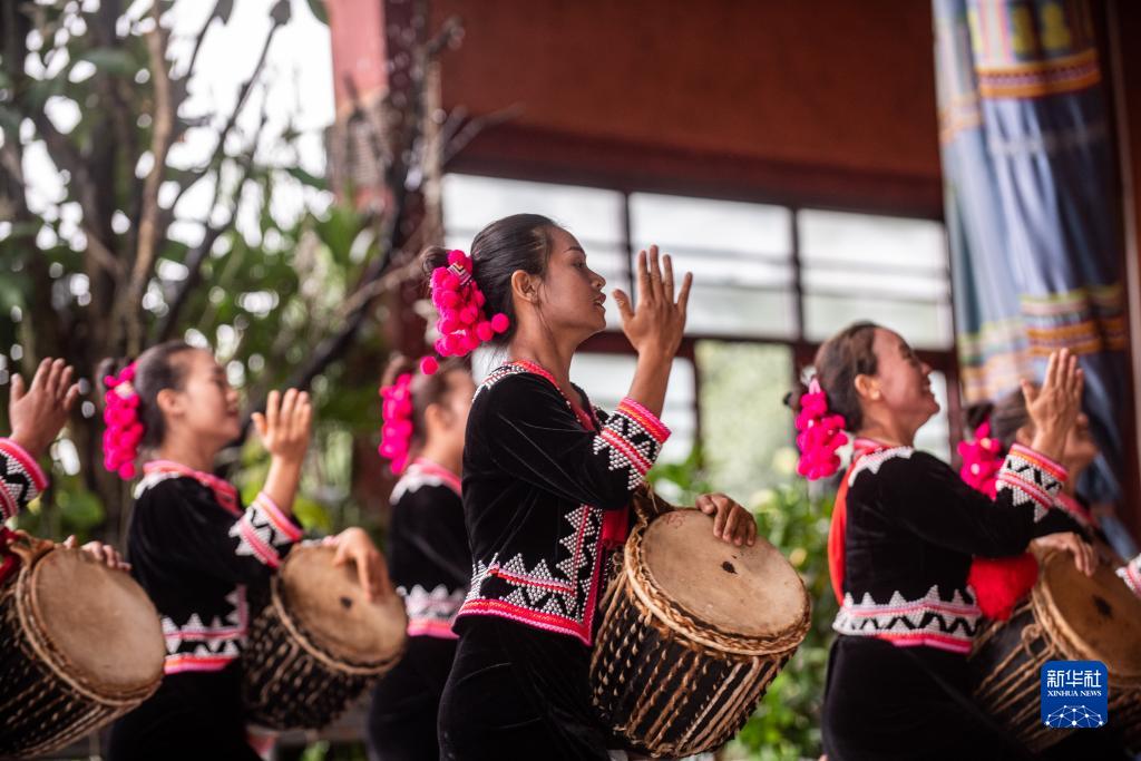 瀾滄縣東回鎮(zhèn)班利村村民表演拉祜族舞蹈(7月20日攝)。