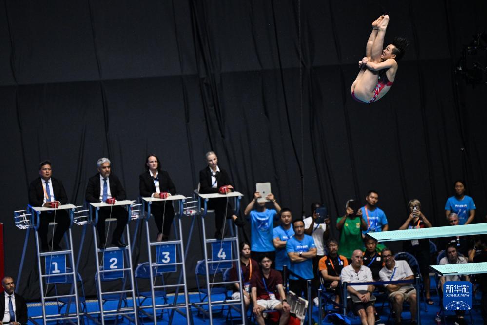 當日,在日本福岡舉行的2023年世界游泳錦標賽跳水女子單人三米板決賽中,中國選手陳藝文、昌雅妮分別以359.50分和341.50分的成績包攬冠亞軍。