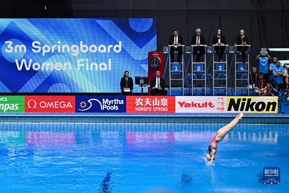 當日,在日本福岡舉行的2023年世界游泳錦標賽跳水女子單人三米板決賽中,中國選手陳藝文、昌雅妮分別以359.50分和341.50分的成績包攬冠亞軍。