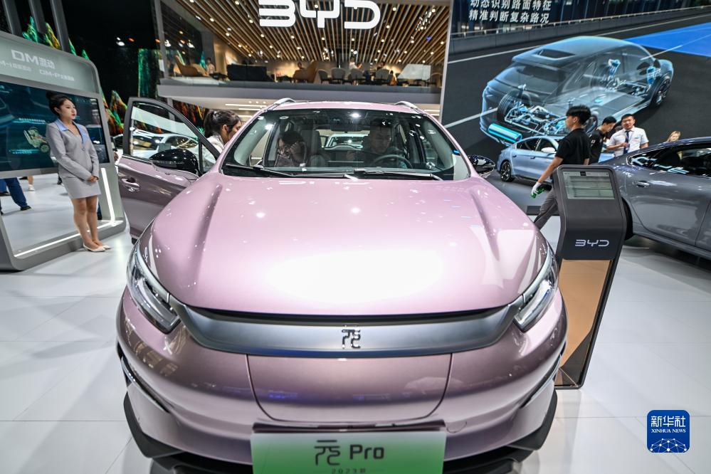 觀眾在長(zhǎng)春汽博會(huì)的比亞迪展位上咨詢和體驗(yàn)元Pro(7月20日攝)。