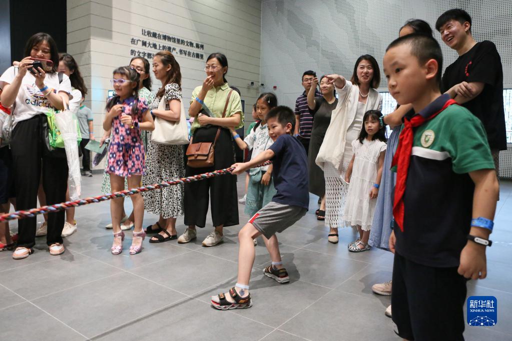 當日,為配合“漠北鋒鳴——鄂爾多斯青銅器文物精品展”,助力城市夜經濟發展,上海市閔行區博物館開展夜間“那達慕”大會。參觀者可以體驗射箭、拔河,品嘗特色美食,充分感受民俗風情的魅力。