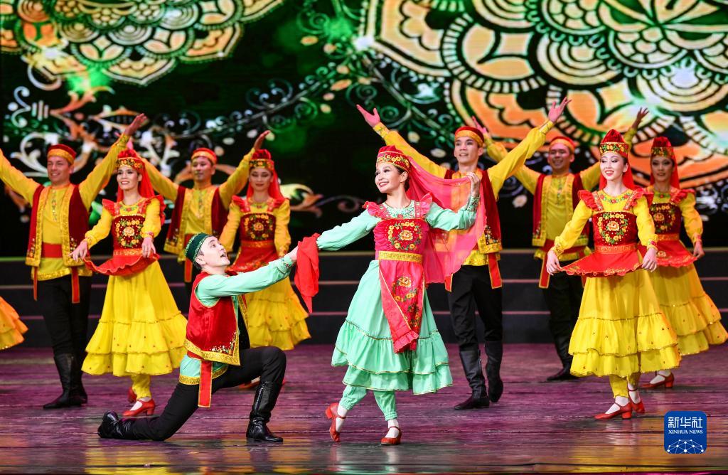 7月21日,哈薩克斯坦薩爾塔納國家舞蹈團的演員在演出。