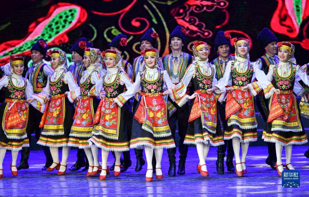7月21日,哈薩克斯坦薩爾塔納國家舞蹈團的演員在演出。