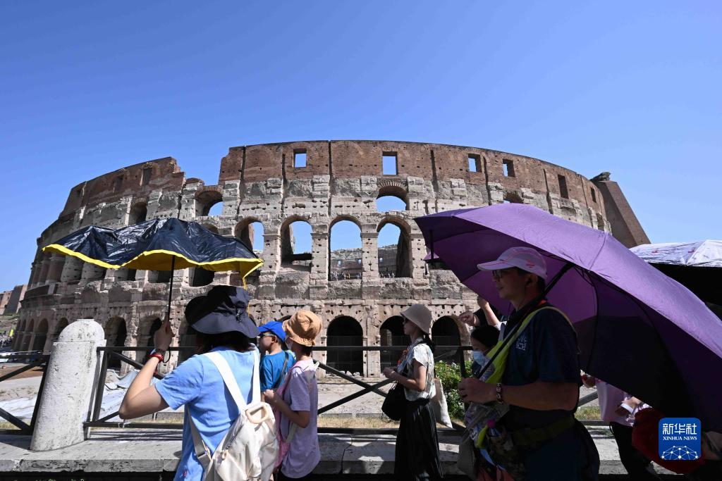 7月18日,游客在意大利羅馬斗獸場外游覽。