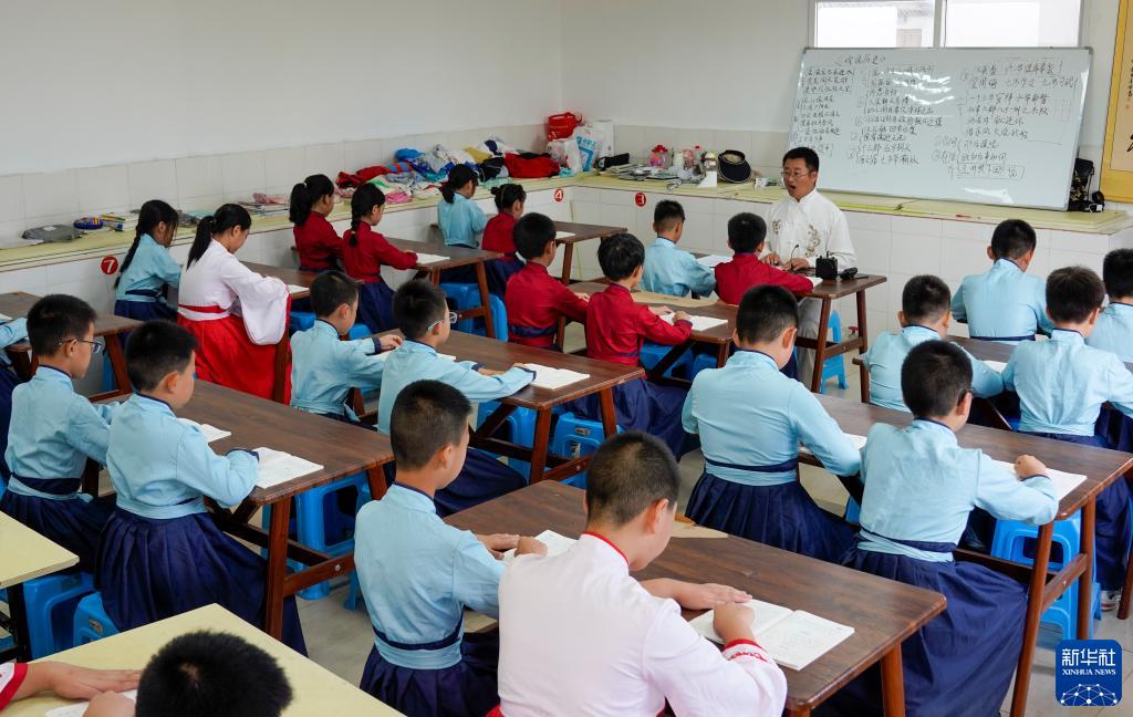 7月22日,萬州區恒合土家族鄉一個研學基地內,參加暑期避暑研學活動的學生在誦讀經典古詩詞。