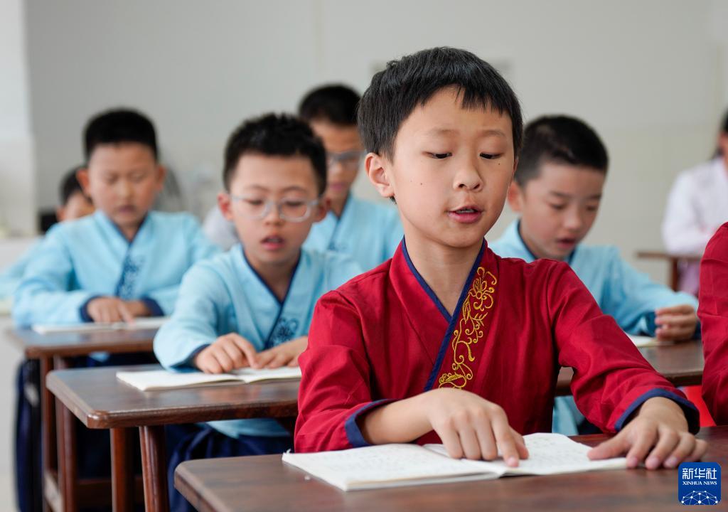 7月22日,萬州區恒合土家族鄉一個研學基地內,參加暑期避暑研學活動的學生在誦讀經典古詩詞。