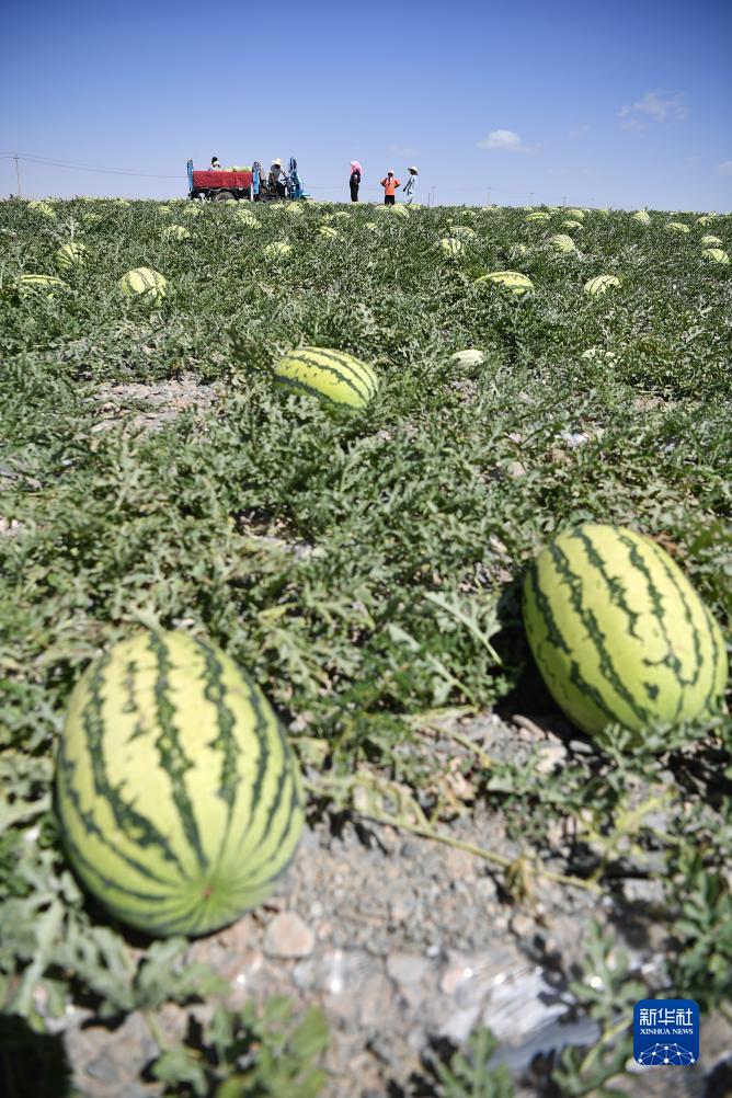 農戶在中衛市沙坡頭區香山鄉收獲硒砂瓜(7月21日攝)。
