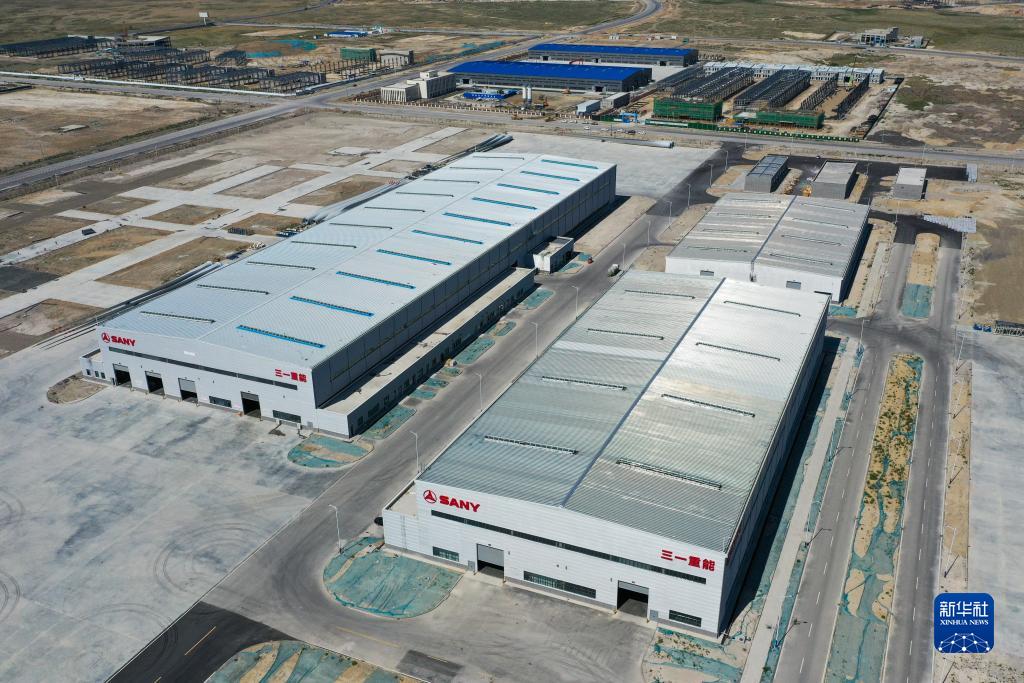 這是7月22日在新疆塔城重點開發開放試驗區先行發展區拍攝的已經投產的三一(塔城)風電設備有限公司(無人機照片)。