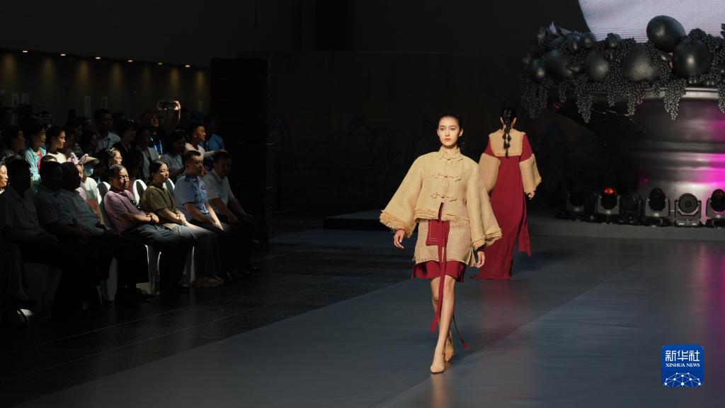 在時尚秀現場,模特展示服飾作品(7月22日攝)。