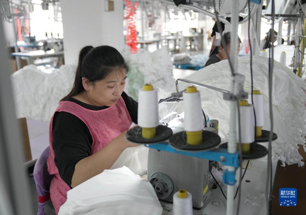 7月23日,工人在肅寧縣一家針紡服裝企業生產車間工作。