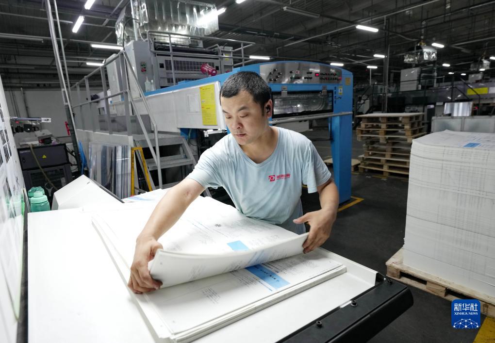 7月23日,工人在河北省肅寧縣的一家圖書印刷企業(yè)的生產(chǎn)車間工作。