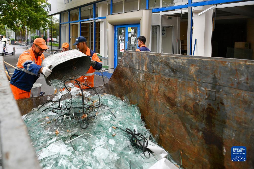 7月24日,在俄羅斯莫斯科,工作人員在遭無人機襲擊的建筑現(xiàn)場進行清理工作。