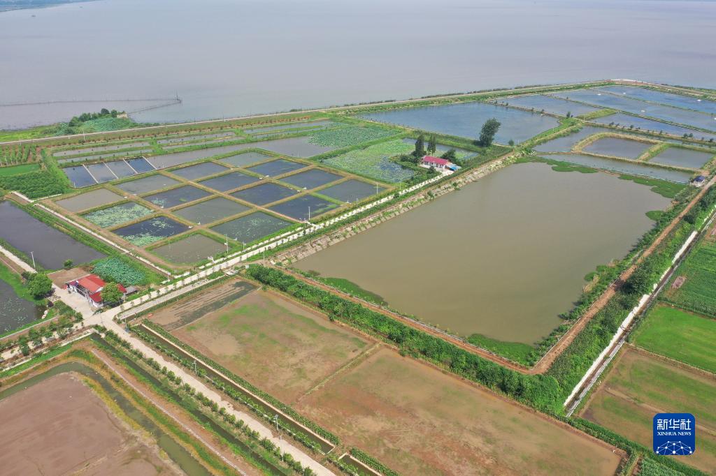 7月10日在湖南省益陽市大通湖區河壩鎮拍攝的中國科學院農業綠色轉型發展研究基地(無人機照片)。大通湖地處洞庭湖腹地,被稱作“洞庭之心”。新華社記者 薛宇舸 攝