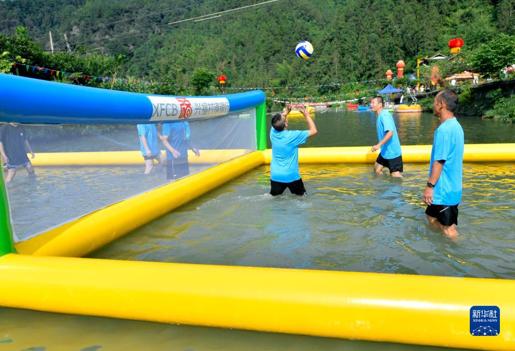 盛夏時節,湖北省恩施土家族苗族自治州宣恩縣高羅鎮板寮村舉行一場以“水上排球”“水上拔河”“水桶接力”“水上呼啦圈”等為內容的趣味水上運動會,吸引全鎮各村組隊參與。村民們在溪水中參與趣味運動,樂享清涼。