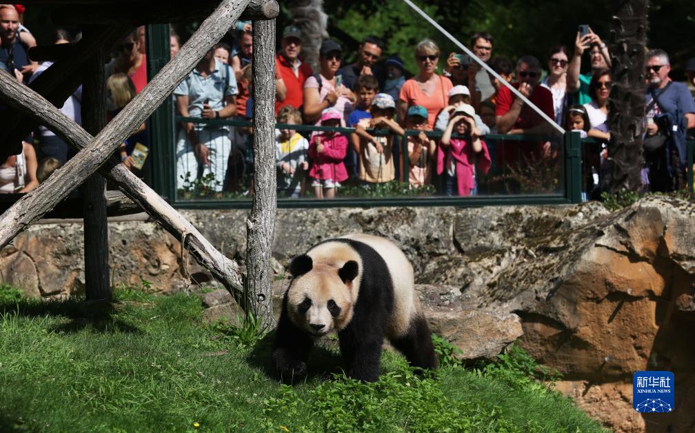 7月24日,在法國(guó)圣艾尼昂市博瓦勒野生動(dòng)物園,人們觀看“圓夢(mèng)”。