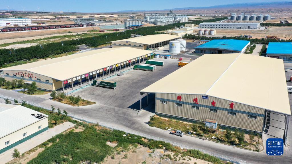 這是7月24日拍攝的新疆阿拉山口綜合保稅區(qū)內(nèi)的跨境電子商務(wù)分揀清關(guān)中心(無(wú)人機(jī)照片)。