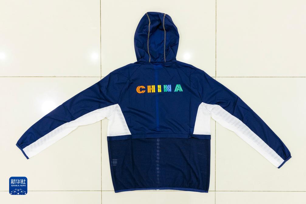這是7月24日拍攝的第31屆世界大學生夏季運動會中國代表團成員配發裝備中的梭織單層夾克。