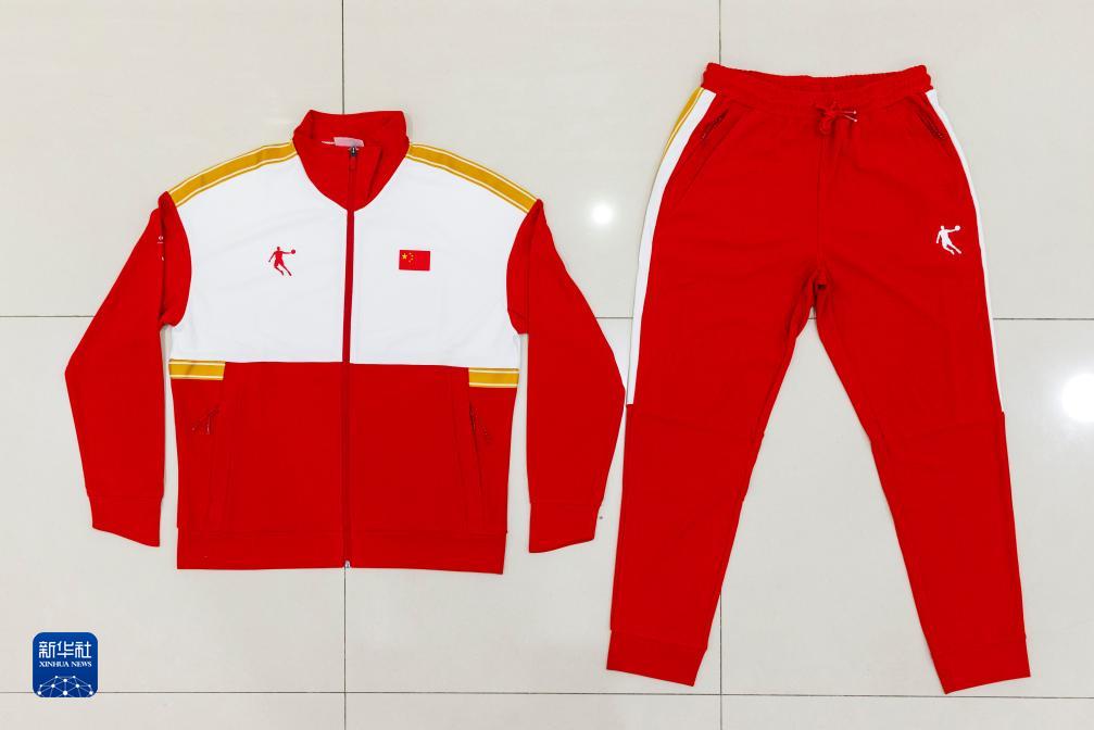 這是7月24日拍攝的第31屆世界大學生夏季運動會中國代表團成員配發裝備中的領獎服。中國運動員登臺領獎時將會身著此套服裝。
