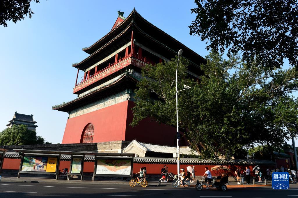 夏日北京鐘鼓樓(7月17日攝)。鐘鼓樓位于北京中軸線的最北端,兩樓前后縱置,氣勢雄偉。作為元、明、清三代都城的報時中心,至今已有700多年的歷史。