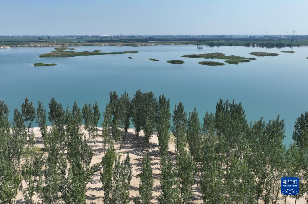 7月25日拍攝的河北省新樂市境內(nèi)的大沙河景色(無人機(jī)照片)。