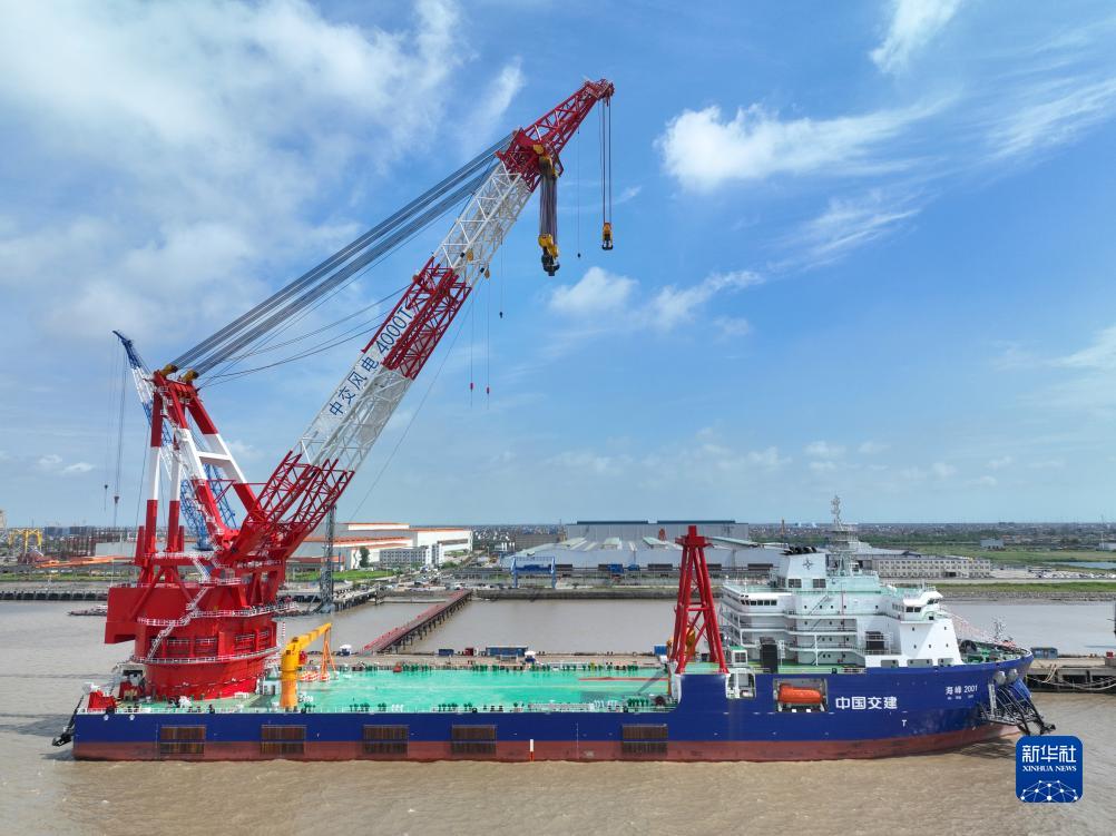 當日,中交海峰風電與振華重工聯手打造的4000噸全回轉起重船“海峰2001”在振華重工啟東海工順利交船。