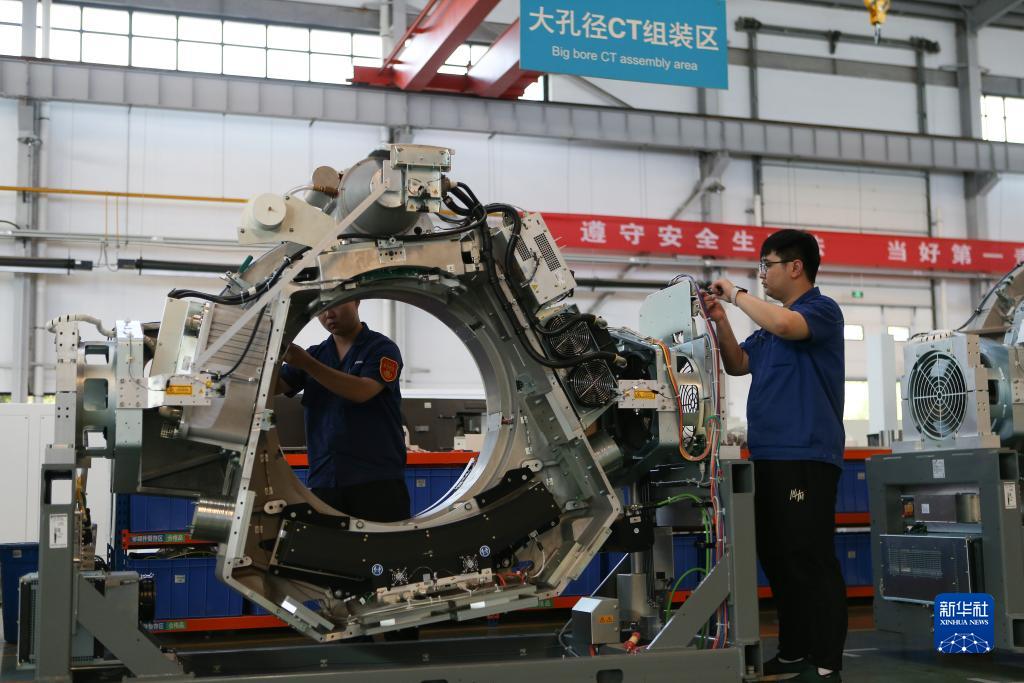 7月25日,在位于淄博市高新區的山東新華醫療器械股份有限公司,工作人員在車間組裝醫療設備。