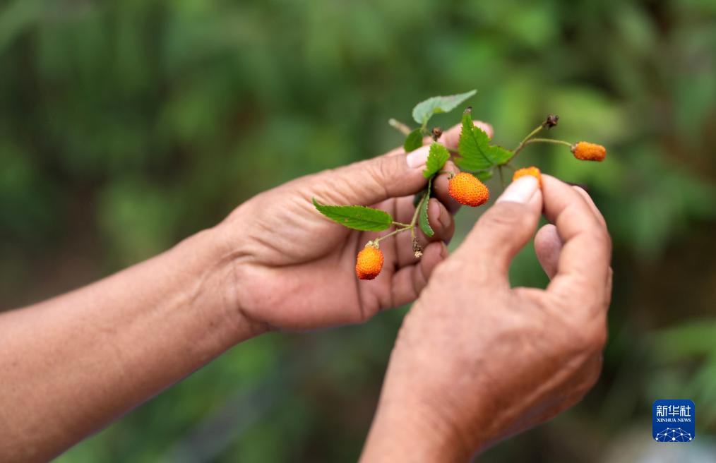 7月23日,張普忠為孩子們找到一種野果。新華社記者 費(fèi)茂華 攝