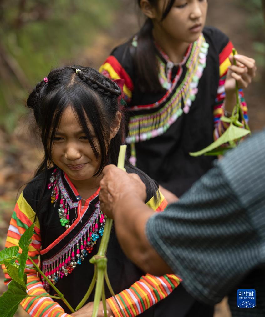 7月23日,張普忠的小孫女張麗紅品嘗酸桿子后,露出痛苦的表情。新華社記者 費茂華 攝