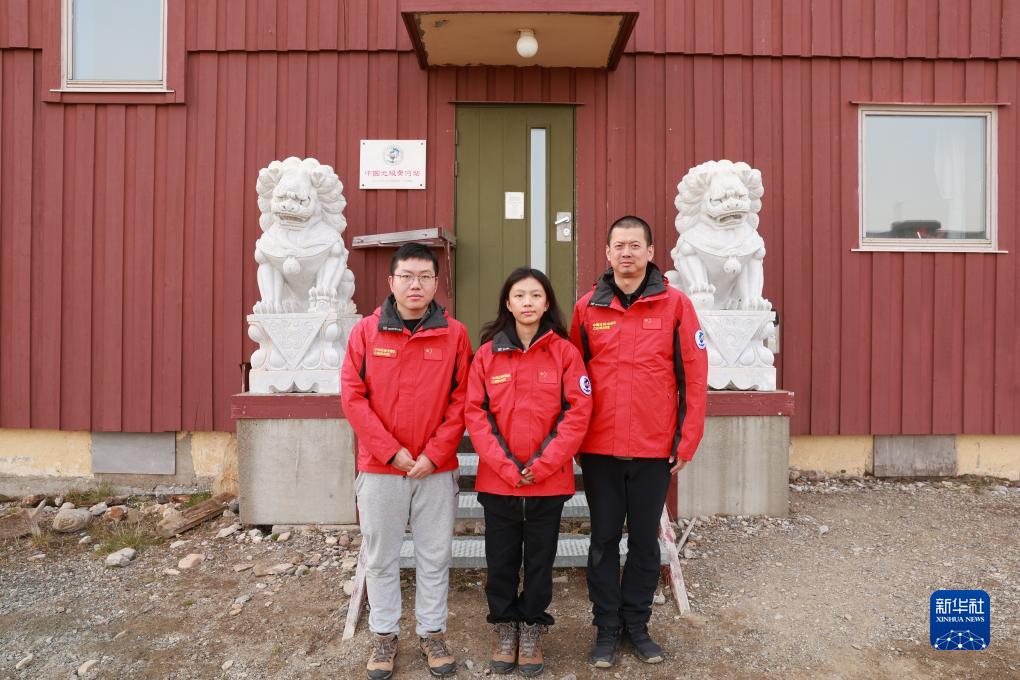 7月24日,中國(guó)科考隊(duì)員在挪威斯瓦爾巴群島新奧勒松的中國(guó)北極黃河站前留影。