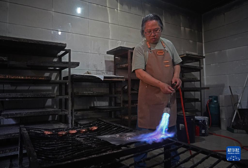 黃俊軍在將銅版畫進行淬火(7月13日攝)。