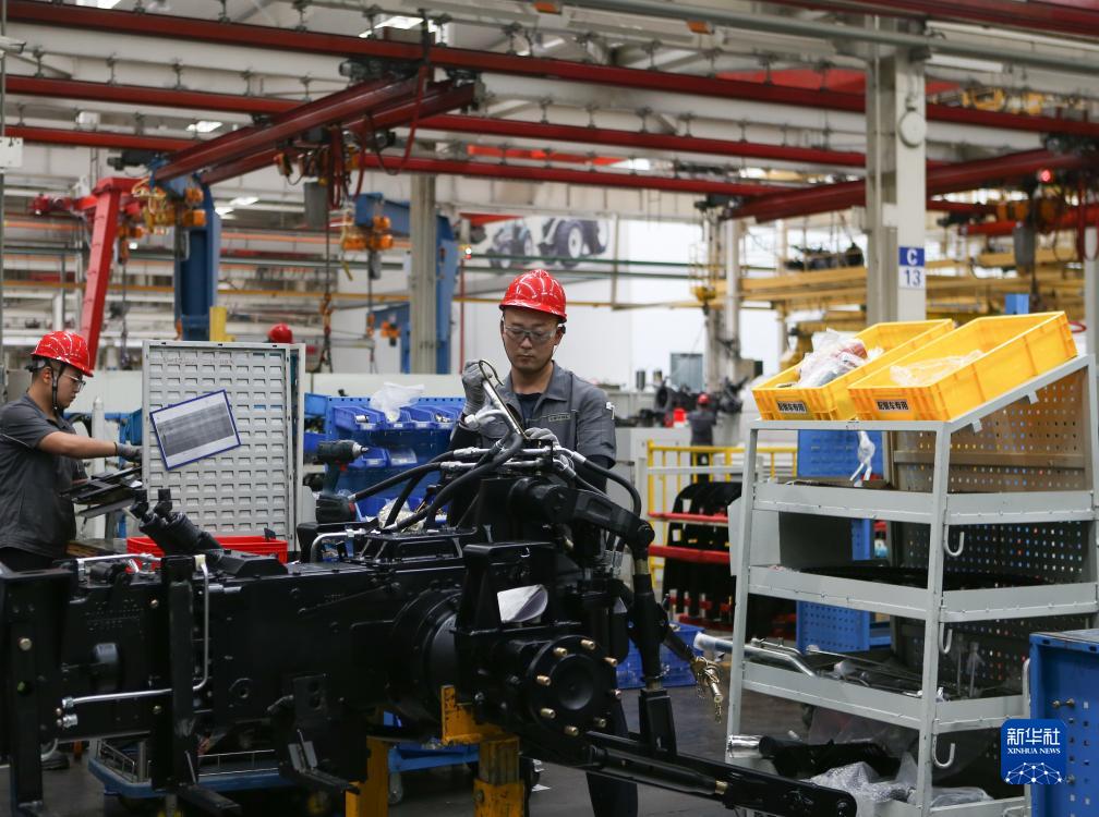 7月26日,在位于濰坊市的濰柴雷沃智慧農業科技股份有限公司,工人在組裝拖拉機零部件。