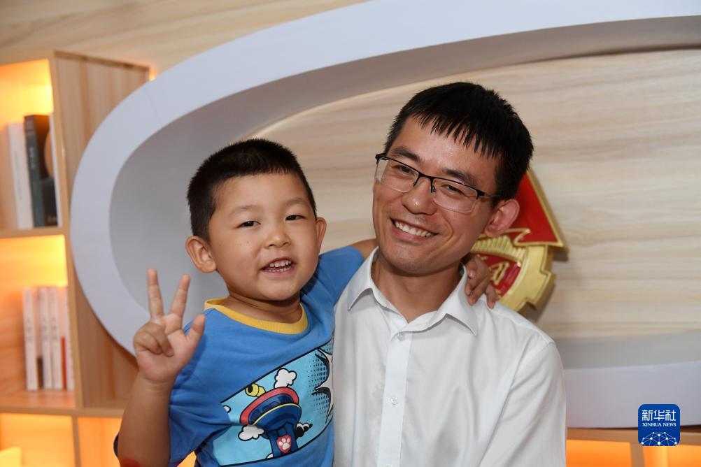 7月26日,在廣西上橫高速公路建設項目部,來自湖北省麻城市的劉宇燦和爸爸在一起。