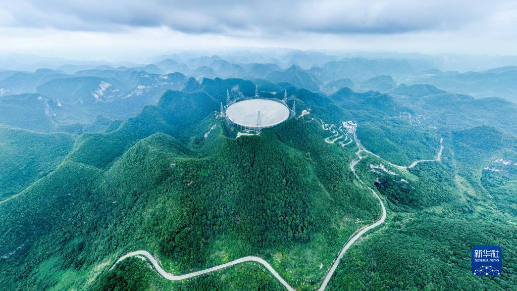 7月26日拍攝的“中國天眼”全景(維護保養期間無人機拍攝)。