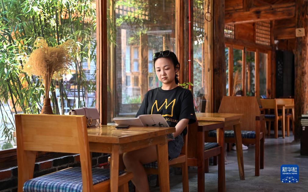 7月25日,游客在陜西省漢中市留壩縣城老街上的留壩書房民宿內休閑。