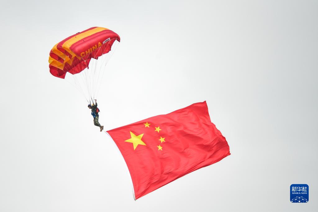 7月26日,在2023年空軍航空開放活動·長春航空展上,“八一”跳傘隊隊員進行表演。