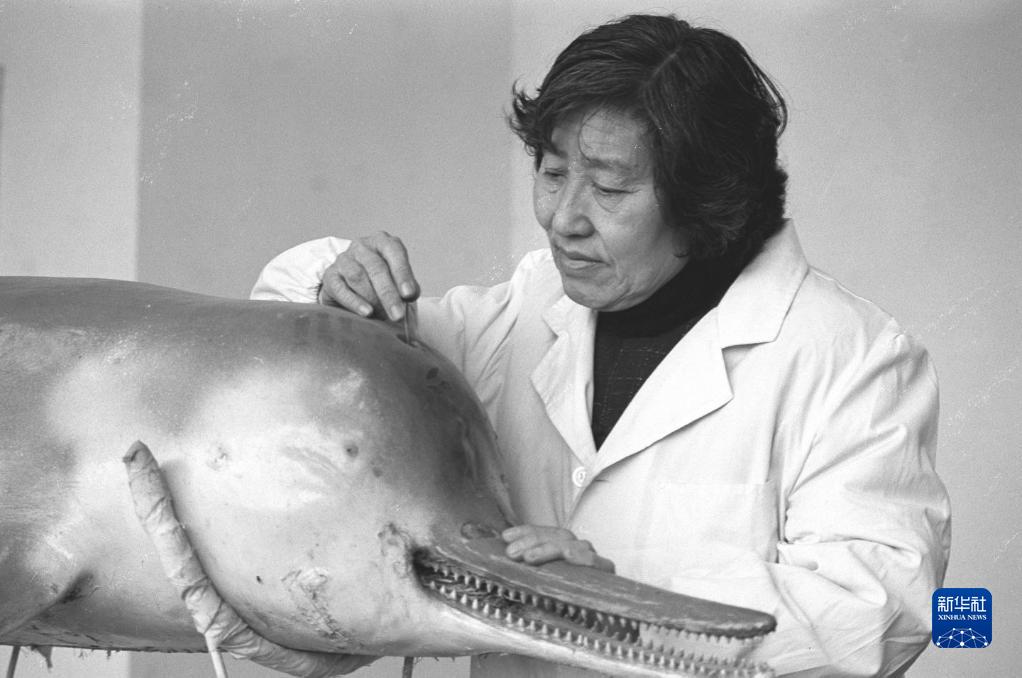 中國科學院水生生物研究所研究員陳佩薰在工作中(20世紀80年代拍攝,資料照片)。如今,她已近百歲,仍惦記鯨豚保護工作。她從事白鱀豚研究多年,組織領導形成一支豚類研究專業隊伍,為保護白鱀豚作出貢獻。