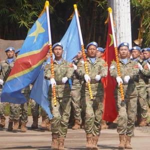 中國第26批赴剛果(金)維和部隊(duì)全體官兵25日在中國半島營(yíng)區(qū)被授予聯(lián)合國“和平勛章”。